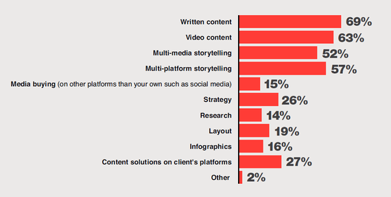 Lumping the top four perceived opportunities together and it’s pretty clear that content marketing, in the form of sponsored content, video and storytelling, is where growth is expected to come from. It also explains the proliferation of content studios at newspapers, magazines and media companies.