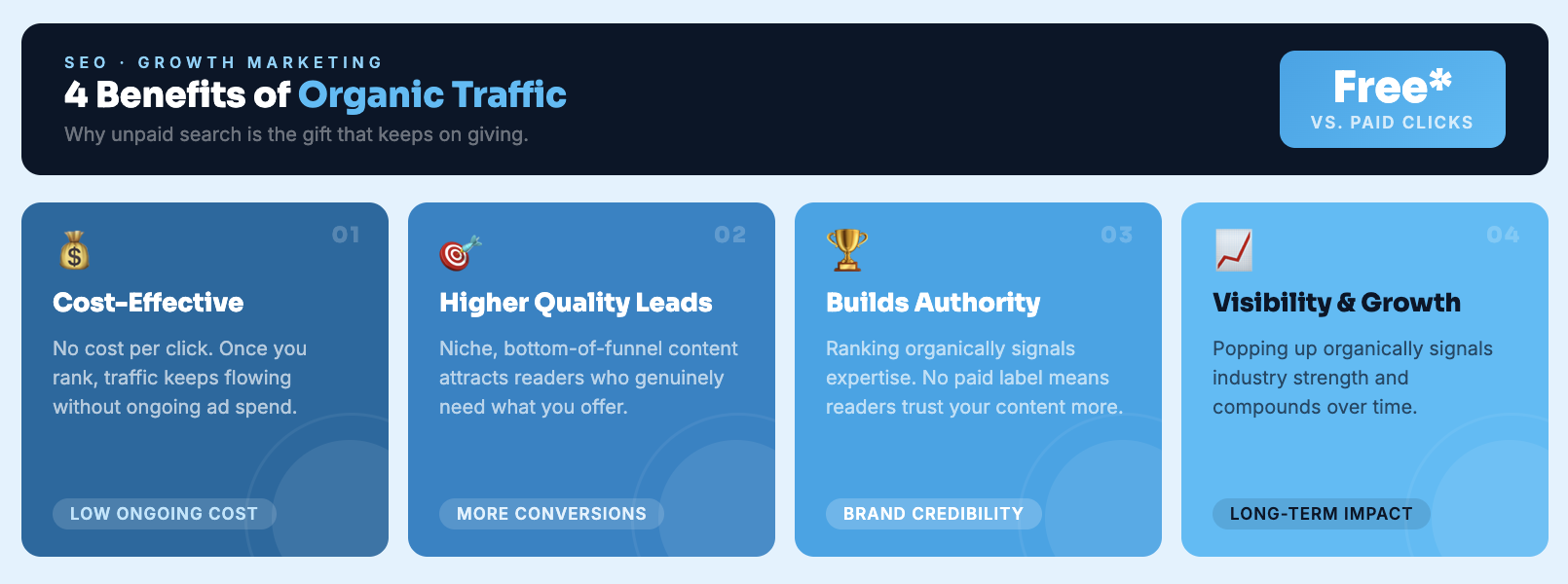 It’s one thing to understand what organic traffic is. But how can it actually help your brand? Here are four of the biggest benefits that come from a healthy flow of organic traffic.