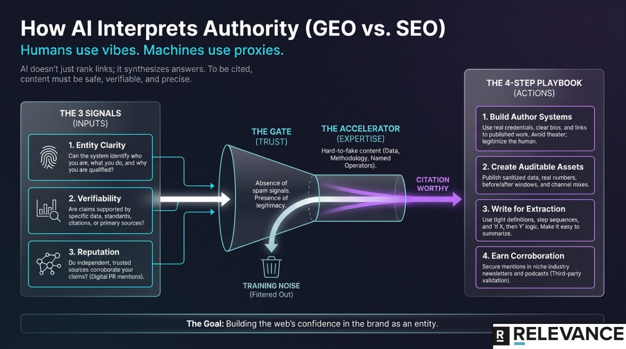 So authority becomes less about “how many people linked to you” and more about “how many independent signals suggest you are the right entity to trust on this topic.”