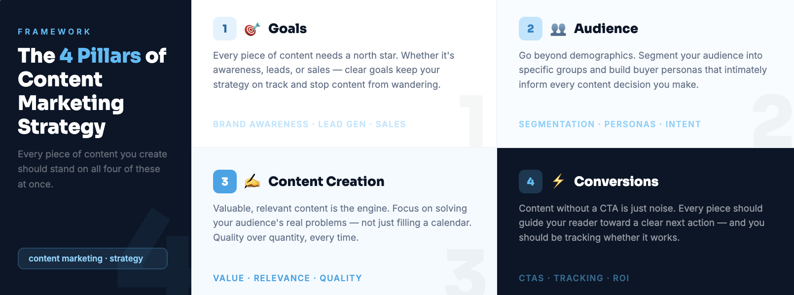 The 4 pillars of a content strategy framework